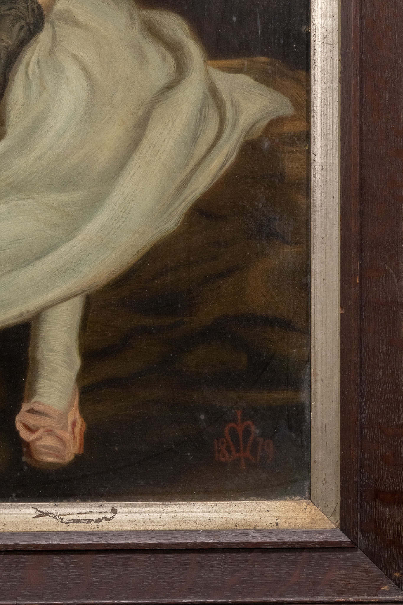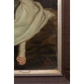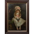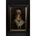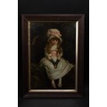 The subdued background contrasts with the luminous treatment of the child’s attire and complexion, enhancing the gentle, introspective mood of the piece. Such works were widely produced in Continental Europe during the Victorian era, reflecting contemporary ideals of innocence and domestic virtue.
