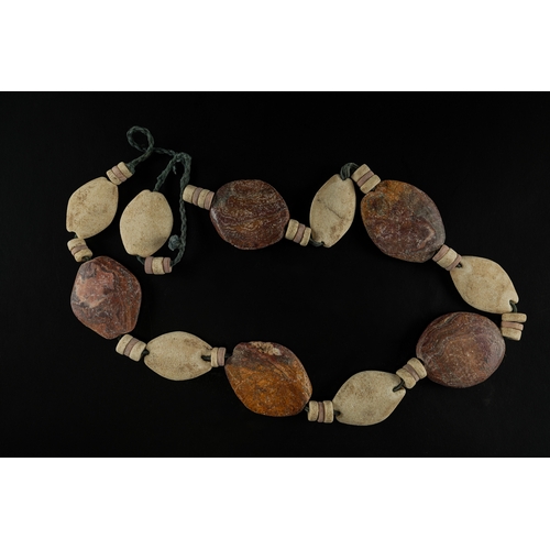 The semi-translucent agate displays natural banding and warm cream to light brown tonal variations. The engraved figures exhibit elongated proportions, tiered garments, horned headdresses, and symbolic attributes consistent with Neo-Assyrian and Neo-Babylonian visual vocabulary.