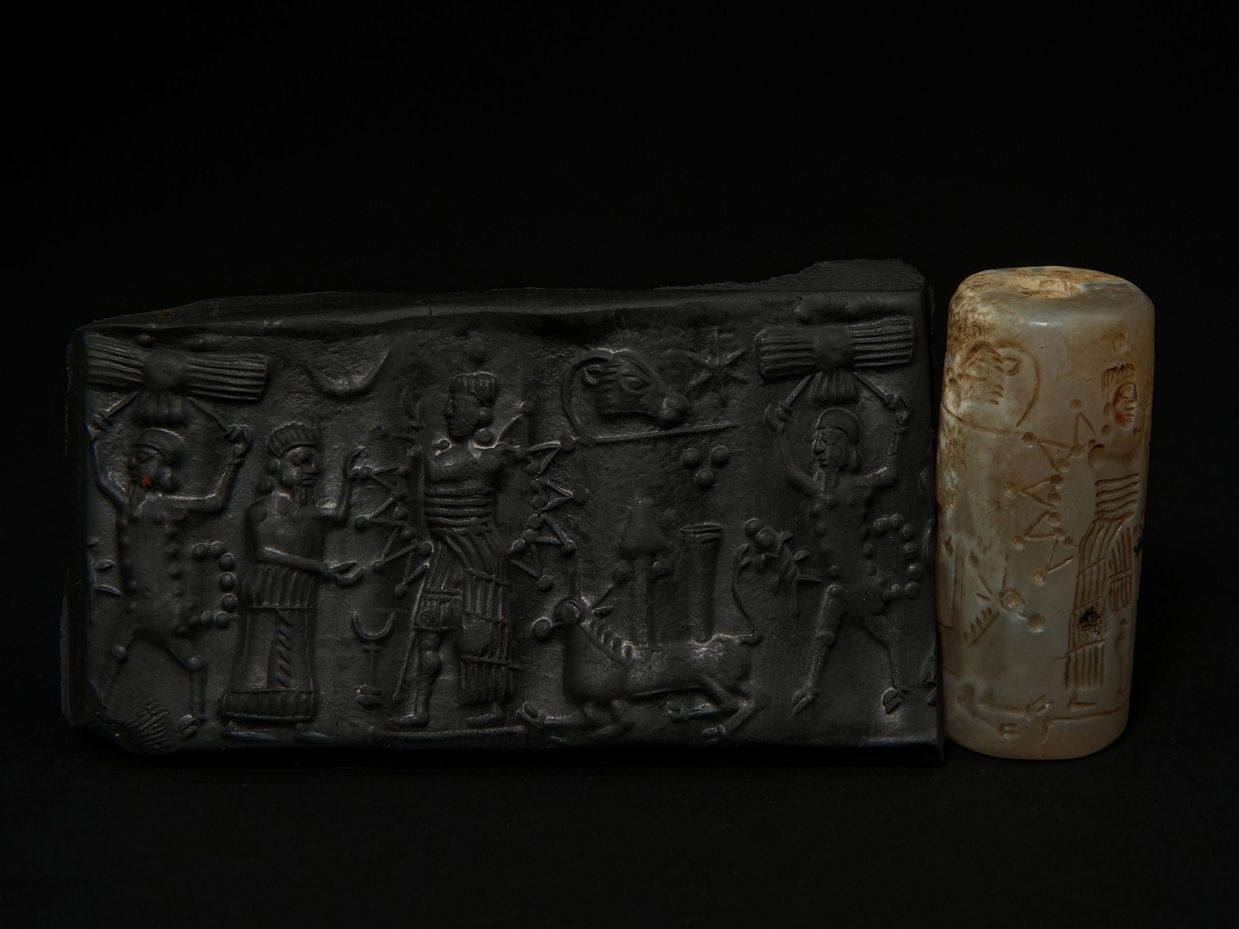 A Neo-Assyrian / Neo-Babylonian Style Agate Cylinder Seal, Possibly Circa 800–600 B.C..
