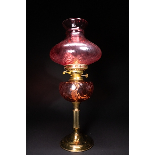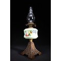A Victorian Hand-Painted Opaline Glass Oil Lamp, 19th Century.