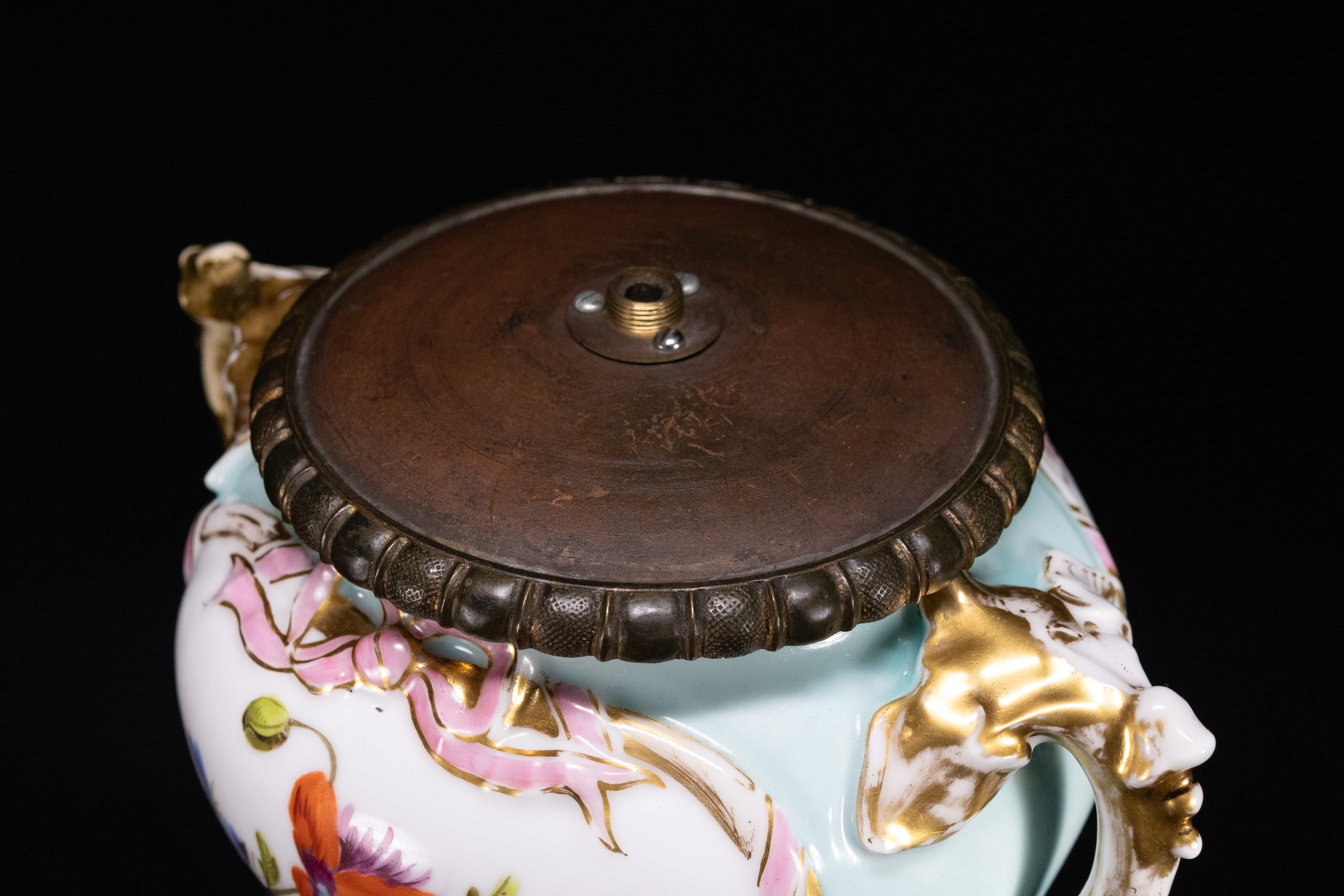 A Victorian-Style French Porcelain and Ormolu Oil Lamp Base, 19th Century.