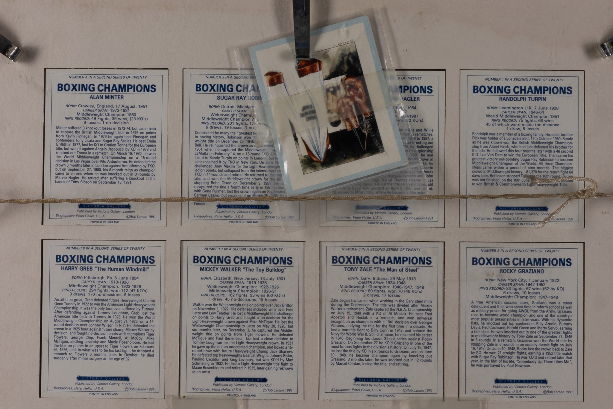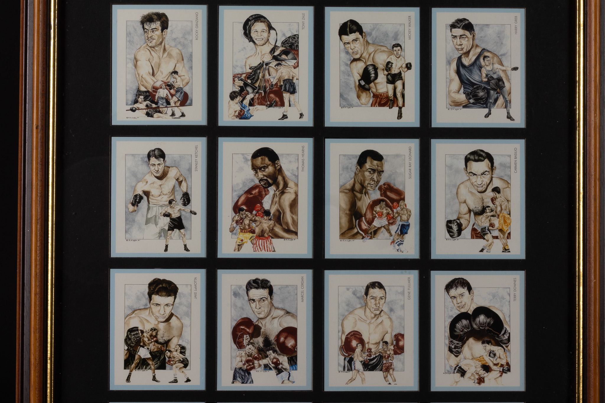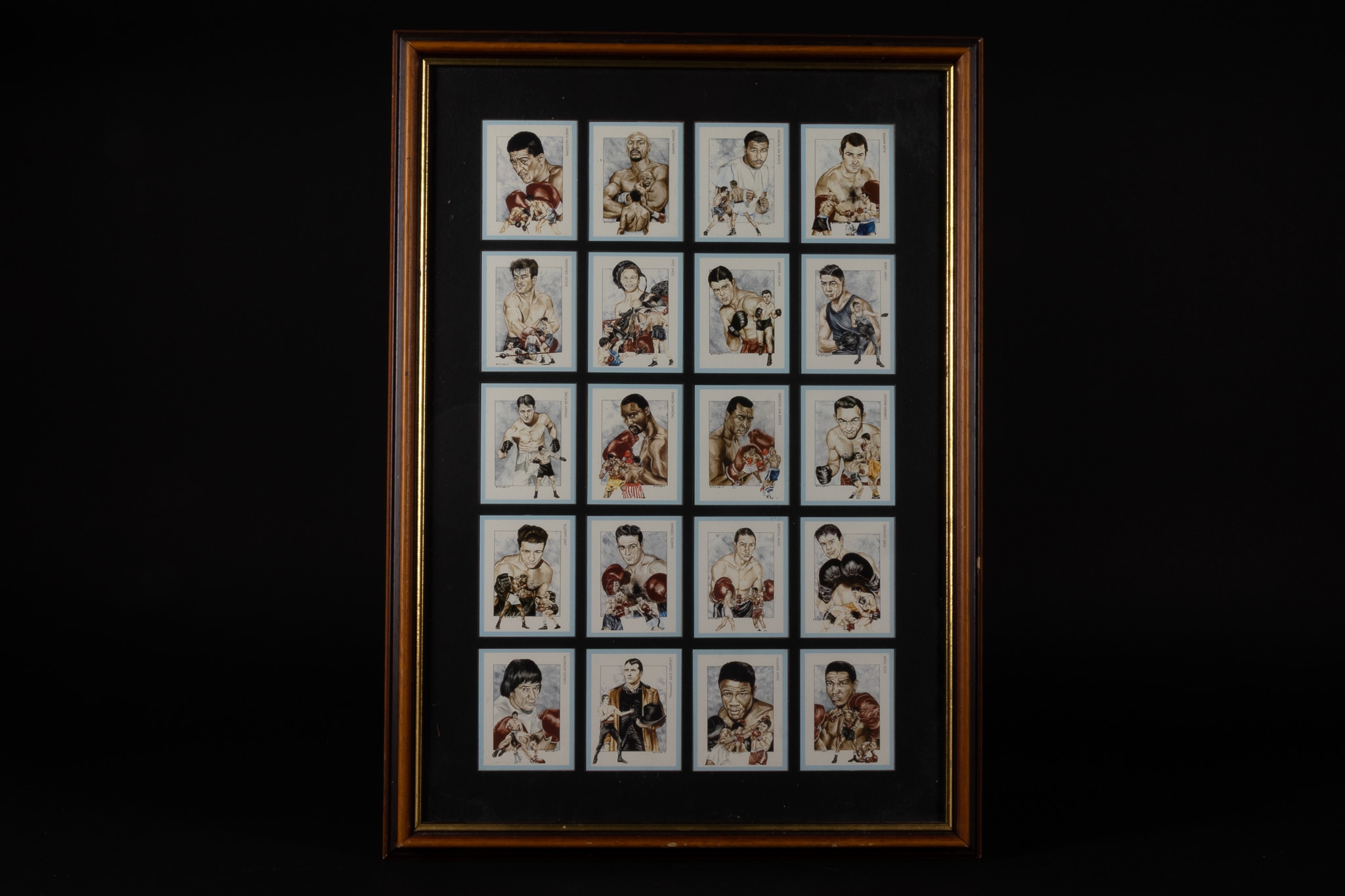 A Framed Collection of Boxing Champions Illustrated Trading Cards, Mid–Late 20th Century.