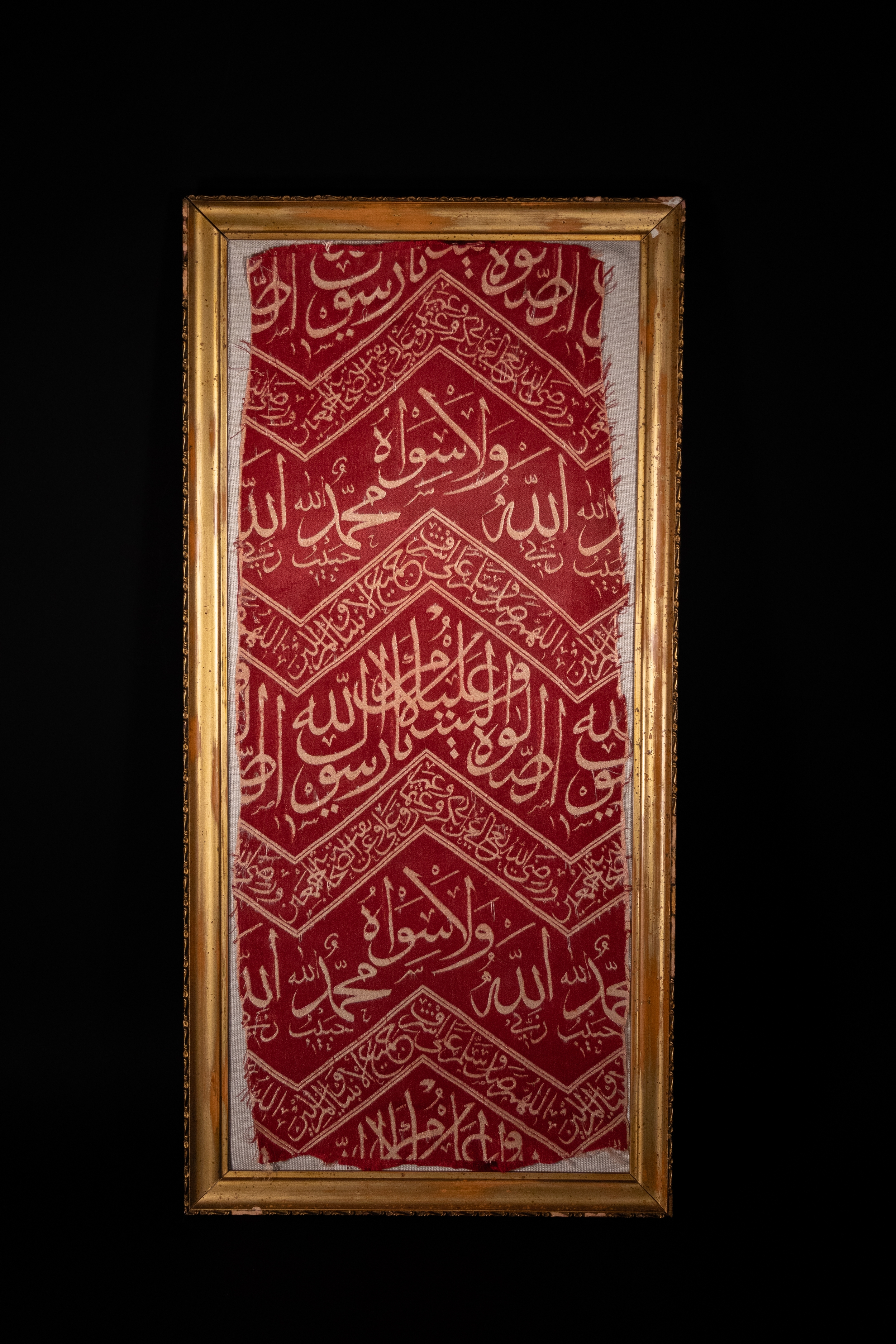 A Framed Ottoman Red Kaaba Kiswa Textile, 18th Century.