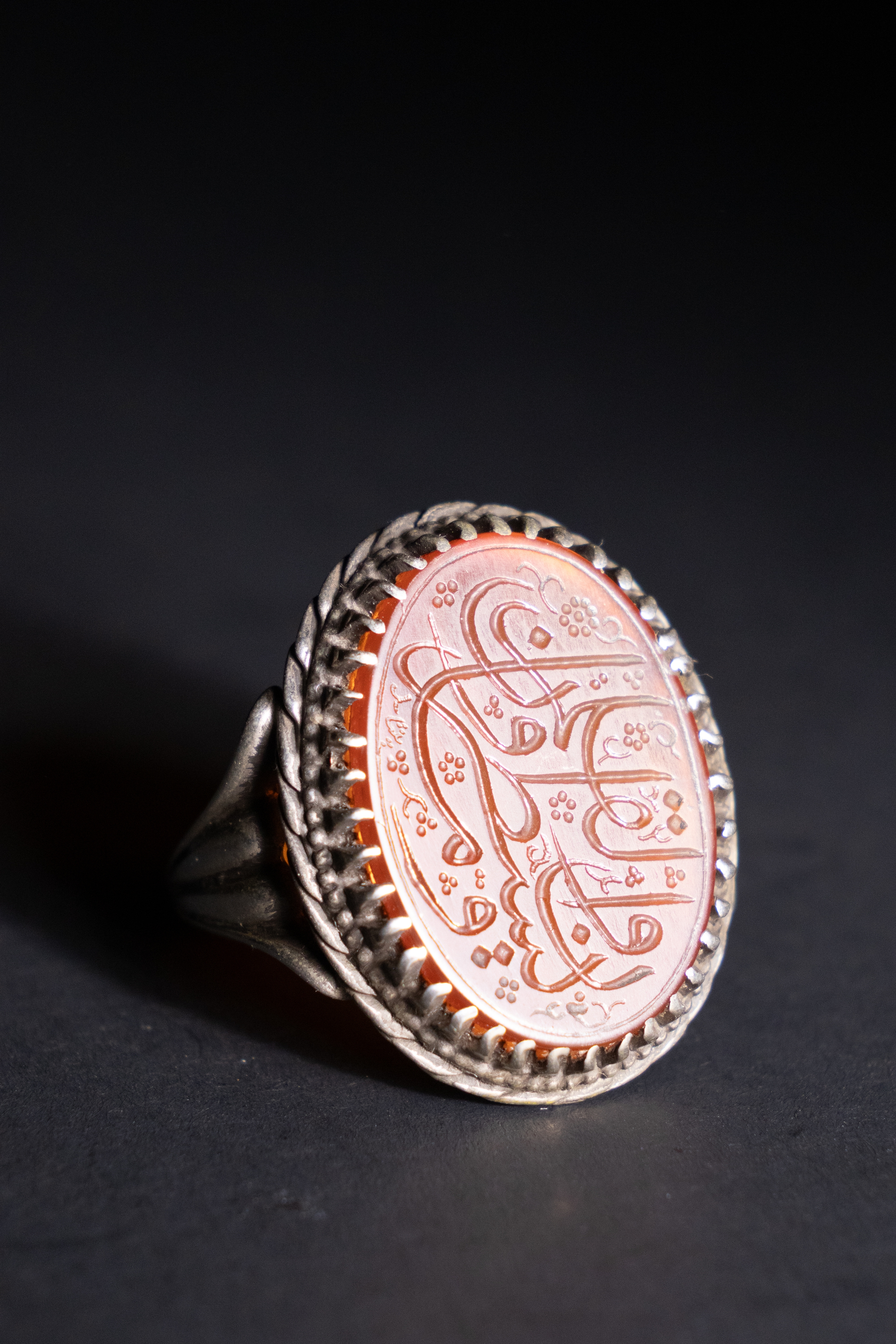 An Islamic Silver Ring with Inscribed Orange Agate.