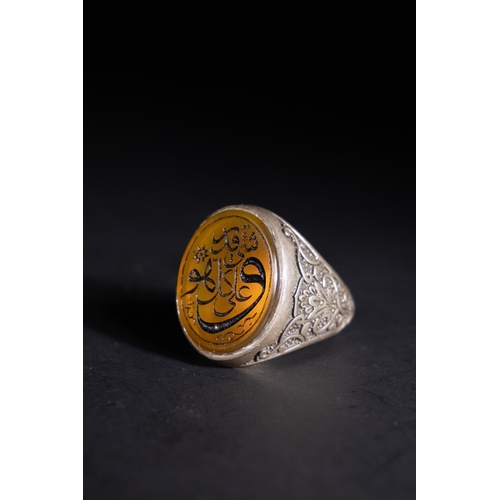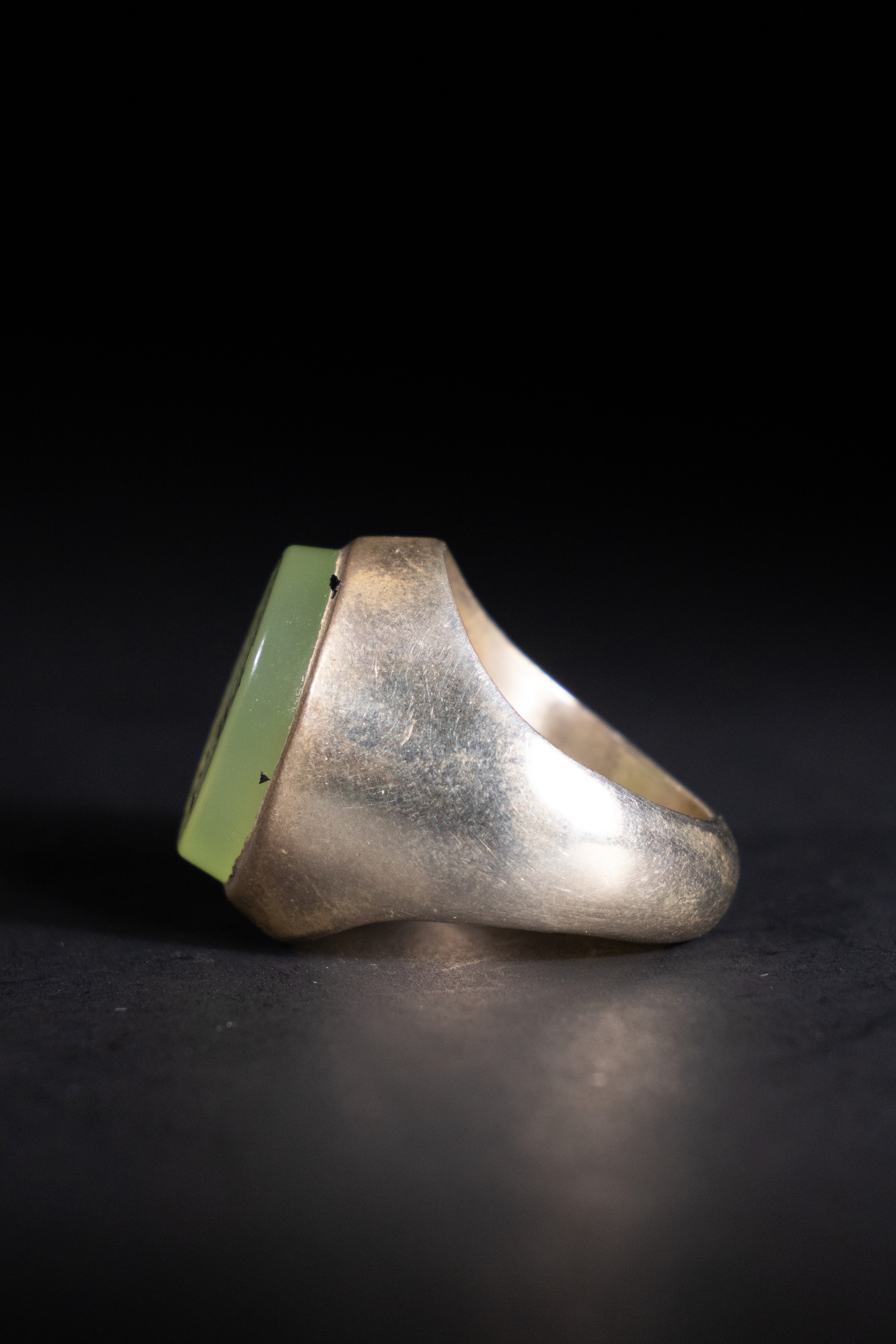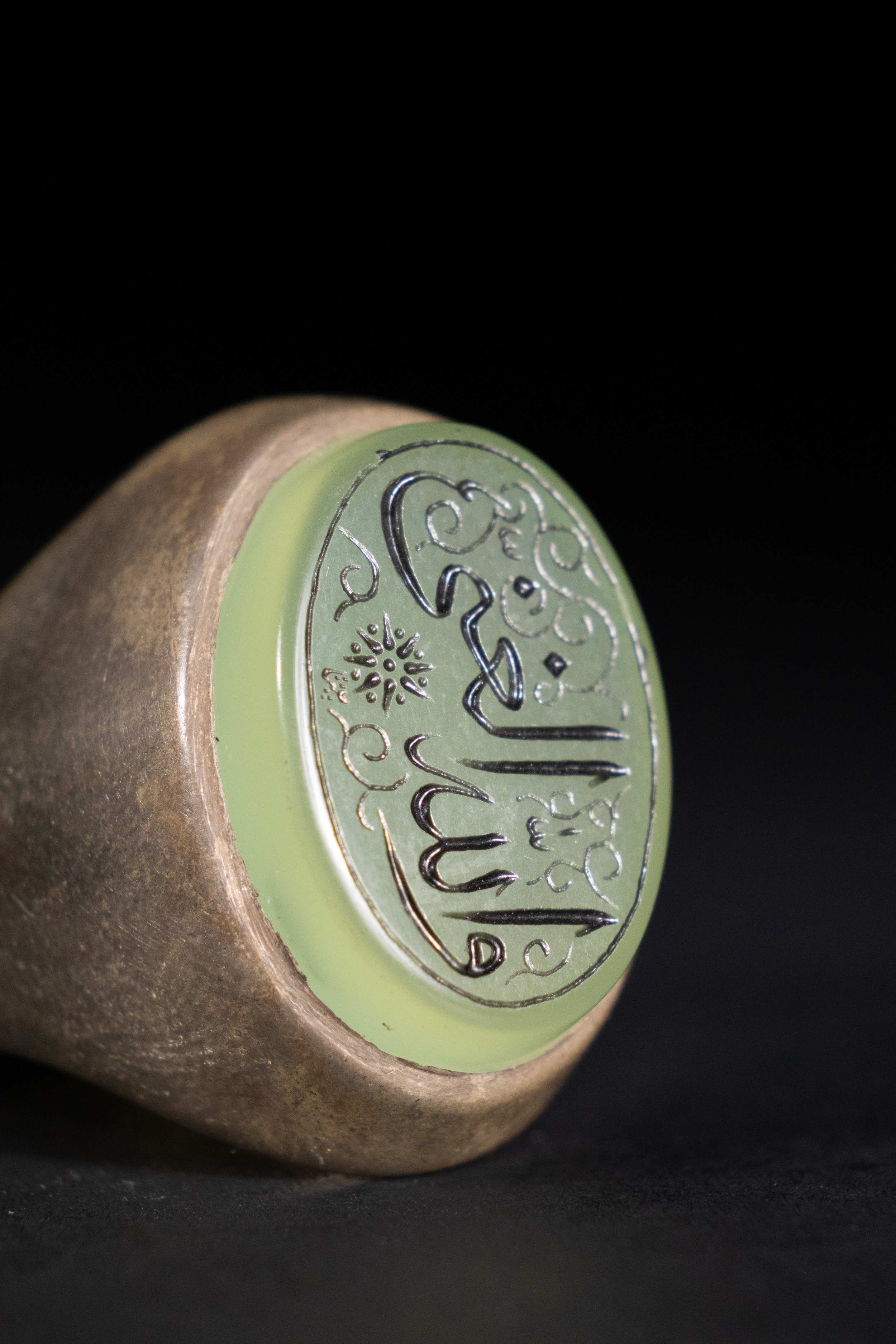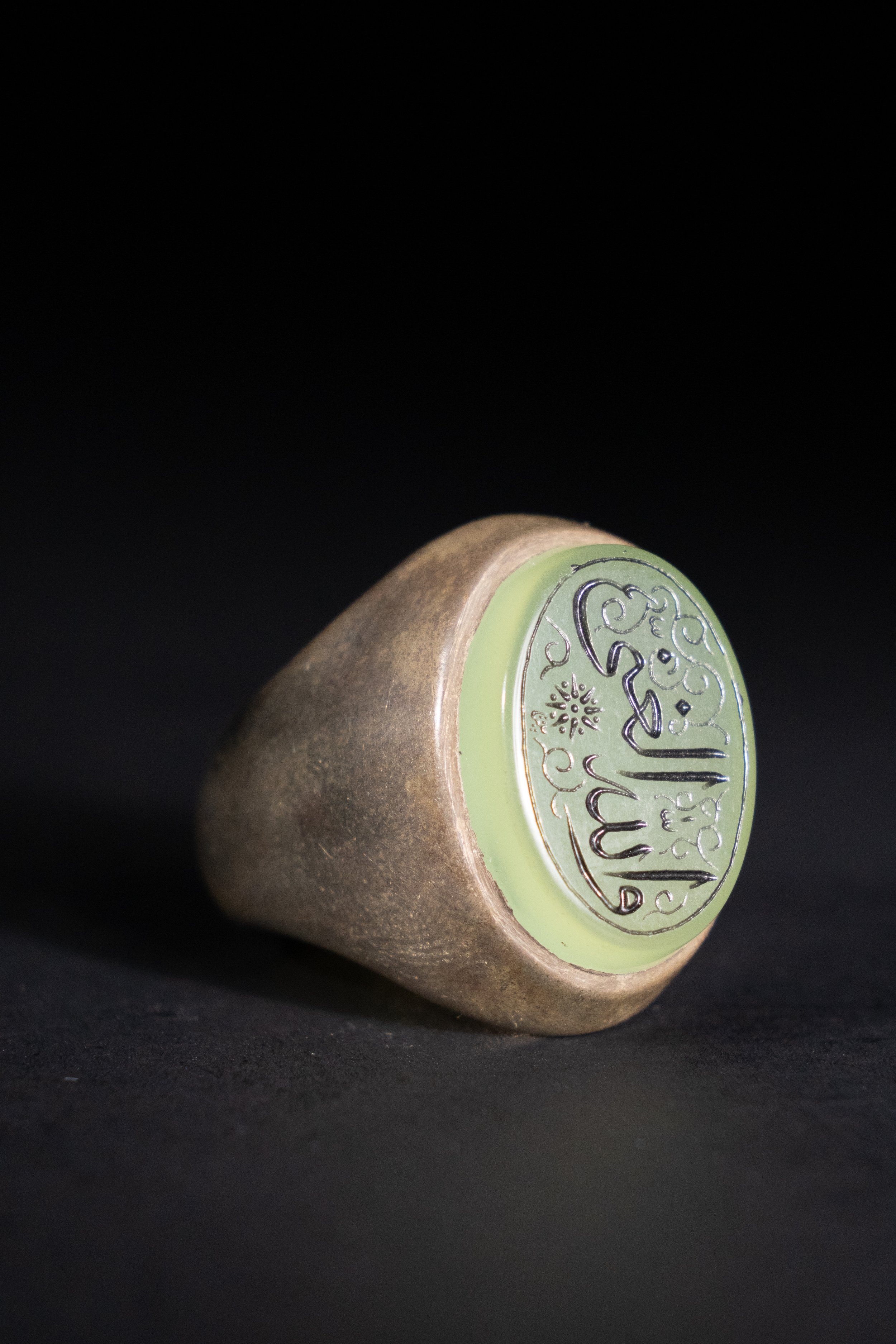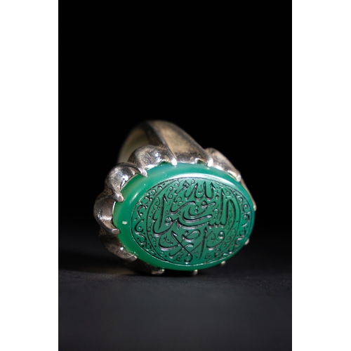 An Islamic Silver Ring with Inscribed Green Agate.