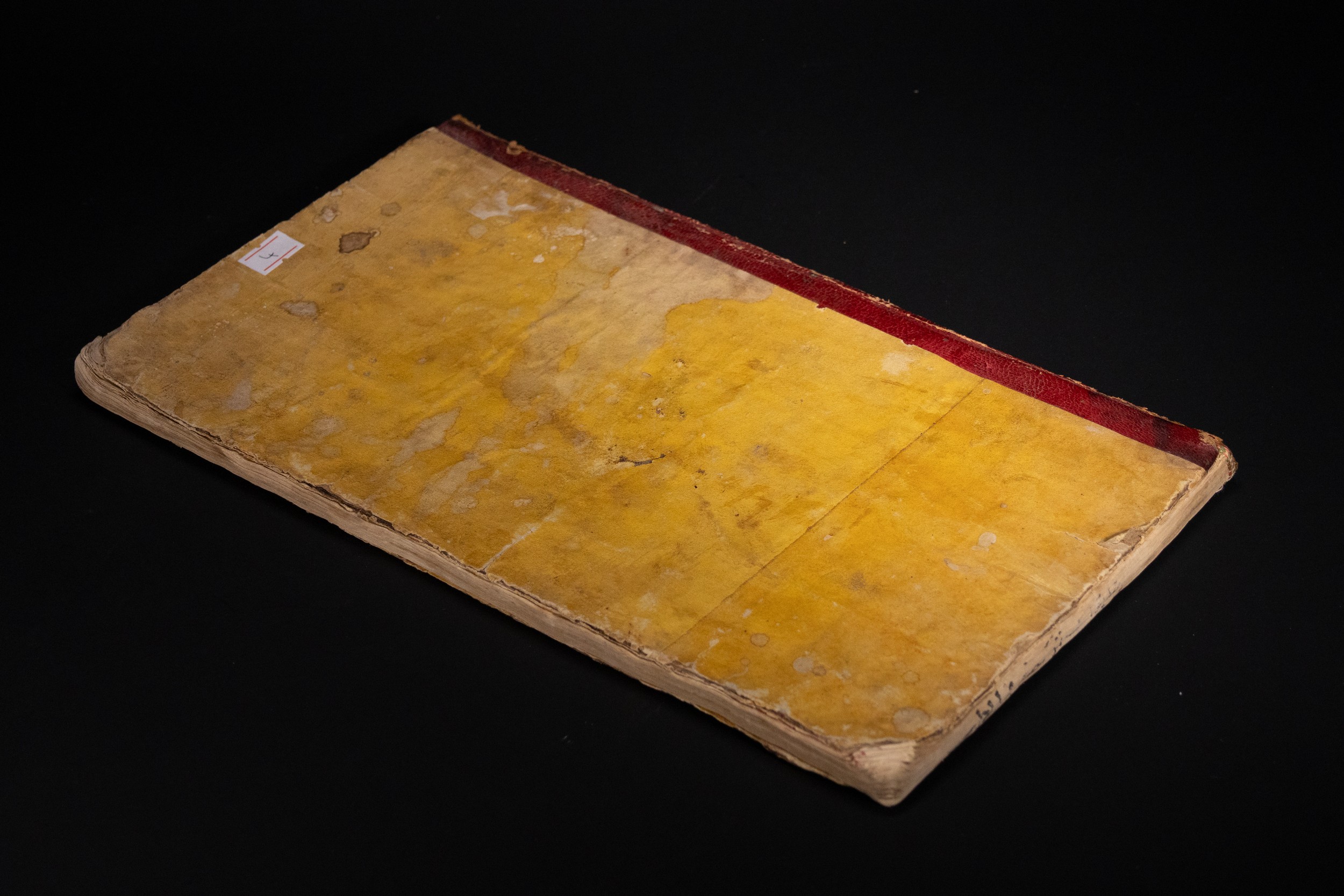 Bound in yellow boards, this manuscript contains sections on early chemistry and medicine. The Arabic-Persian terminology hints at early Islamic scientific exchange.
