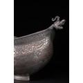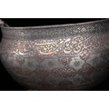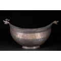 A Safavid Tinned Copper Calligraphic Kashkul Beggar's Bowl, 17th Century.