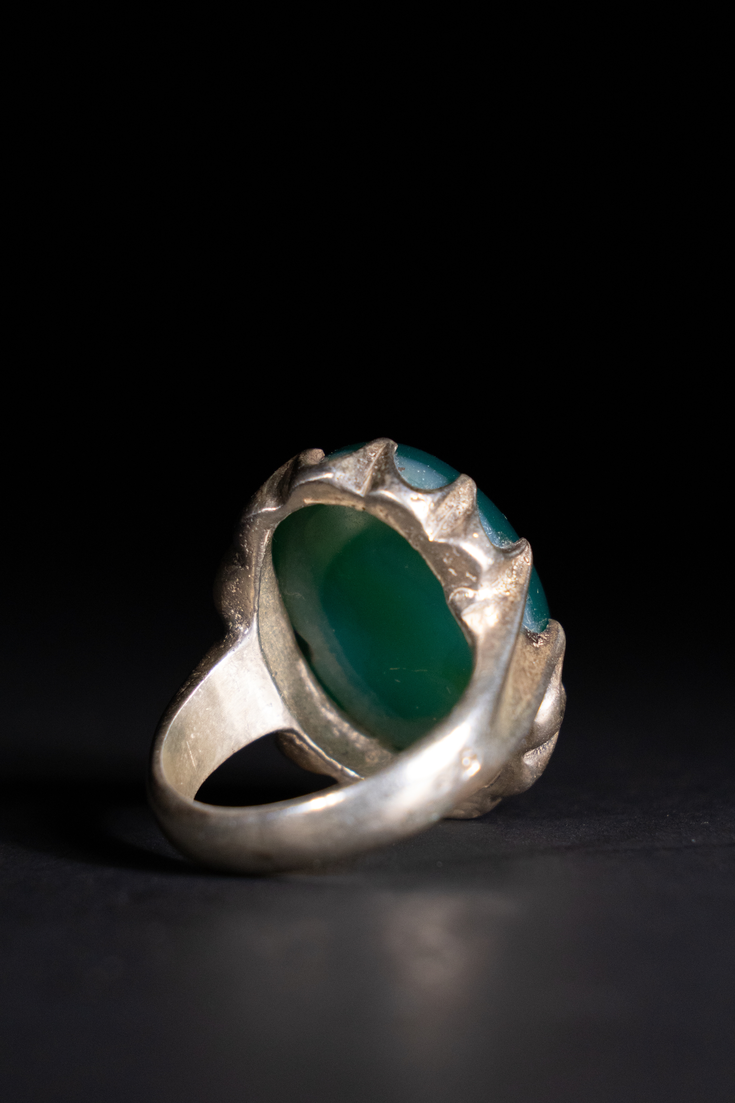 An Islamic Silver Ring with Inscribed Green Agate.