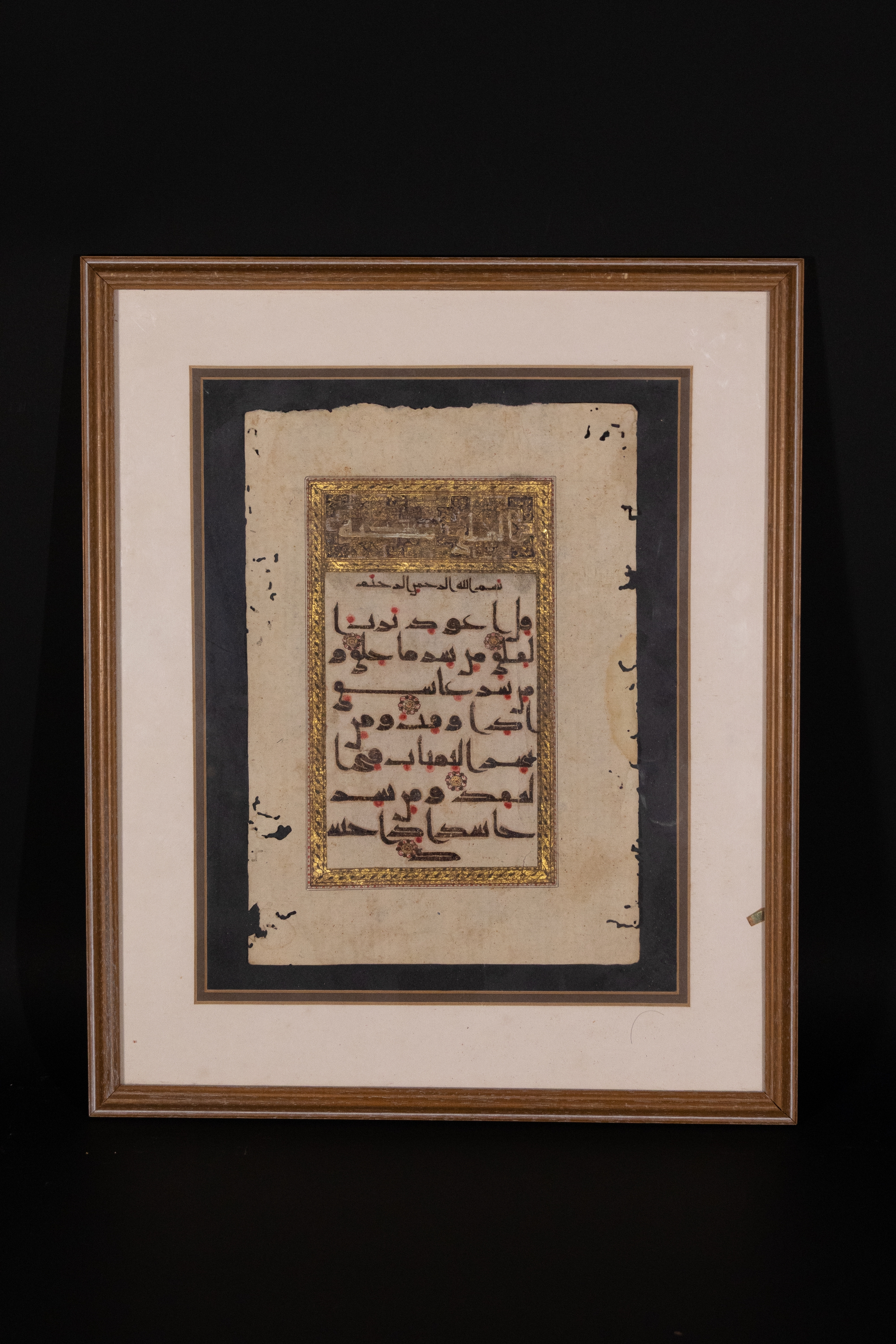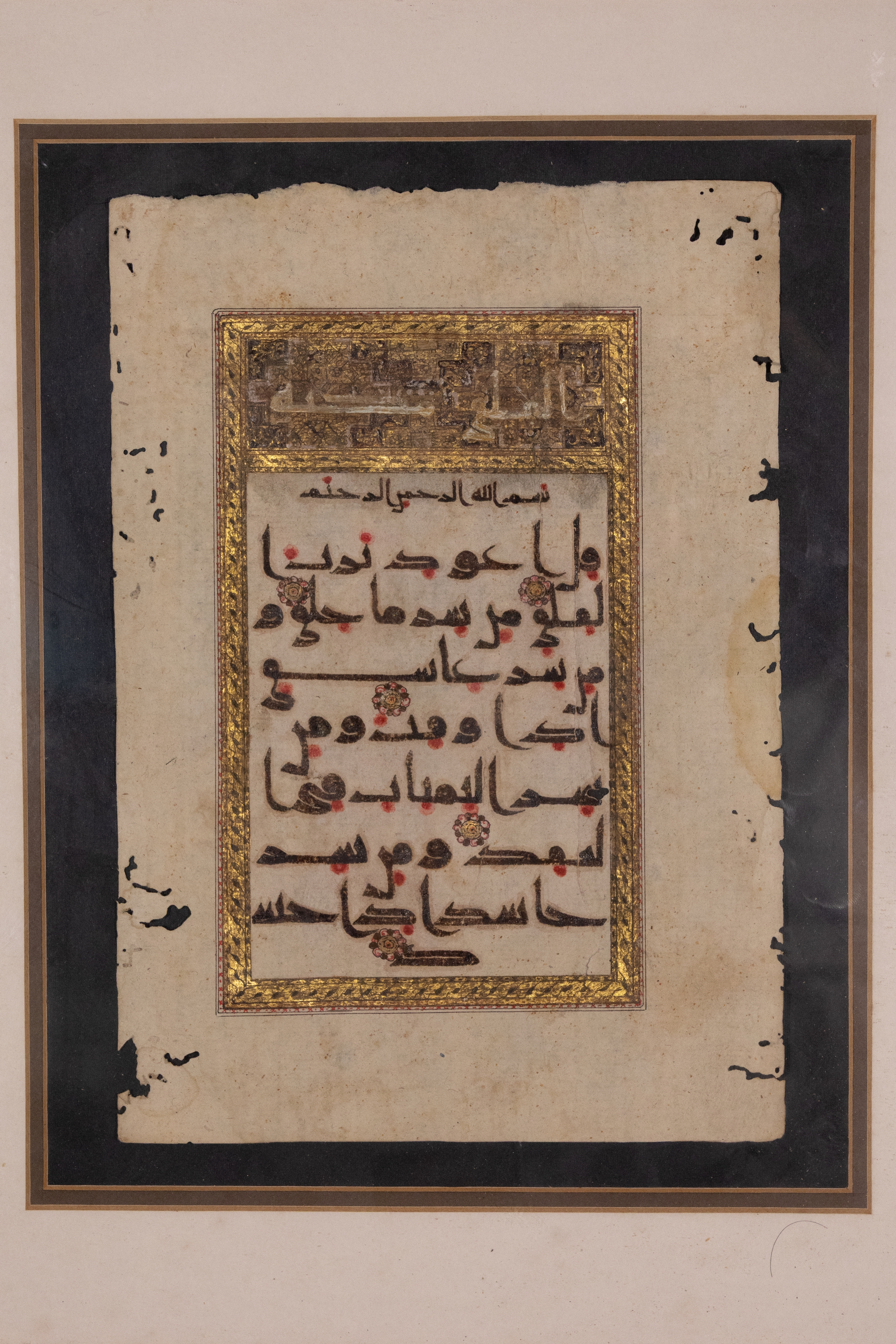 A North African Mamluk-Style Framed Illuminated Quran Page.