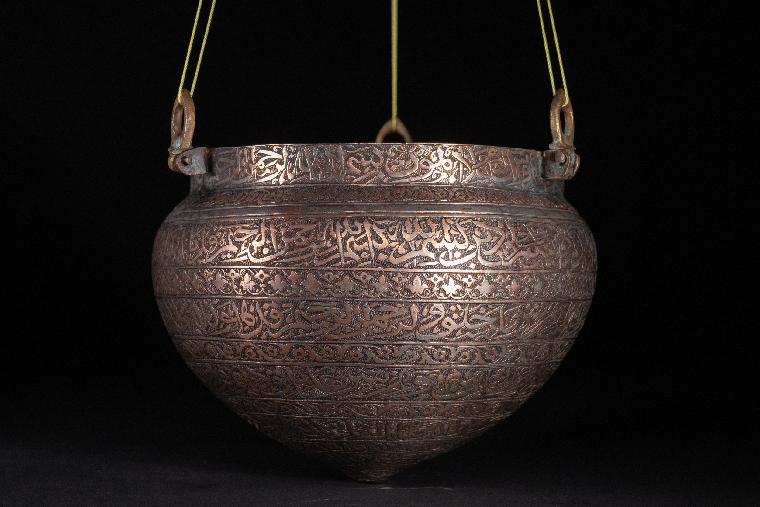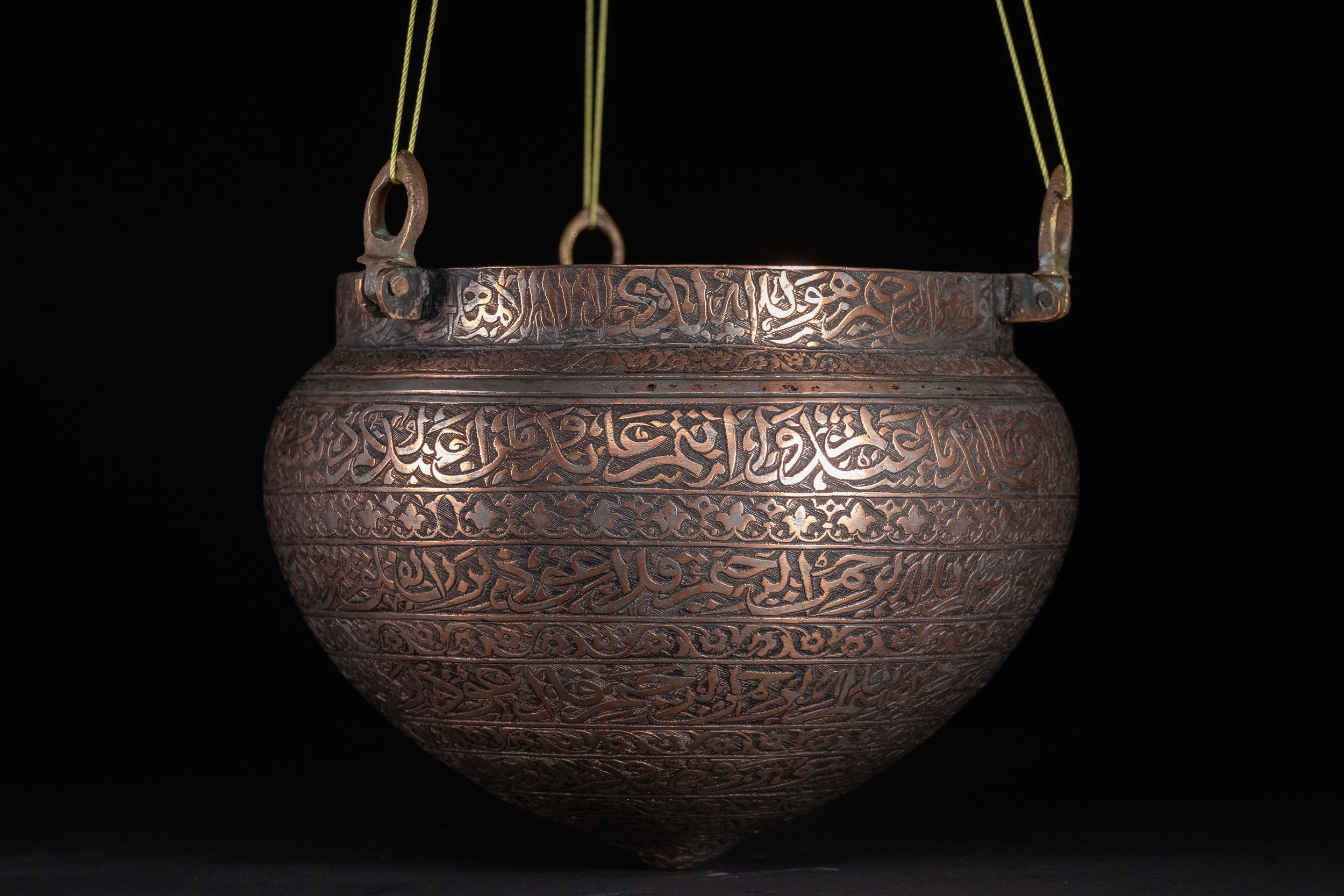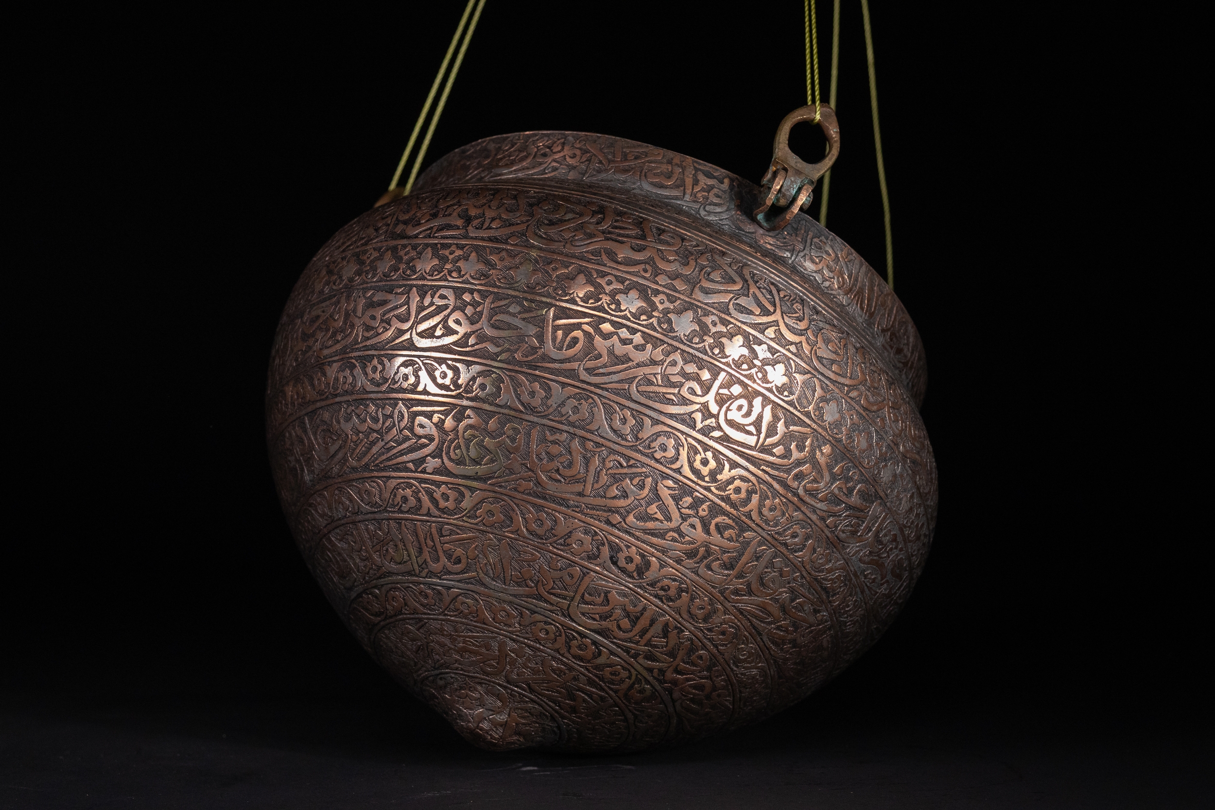 A Cast Brass Hanging Lamp with Arabic Inscriptions, Deccan or Persia, 16th–17th Century.