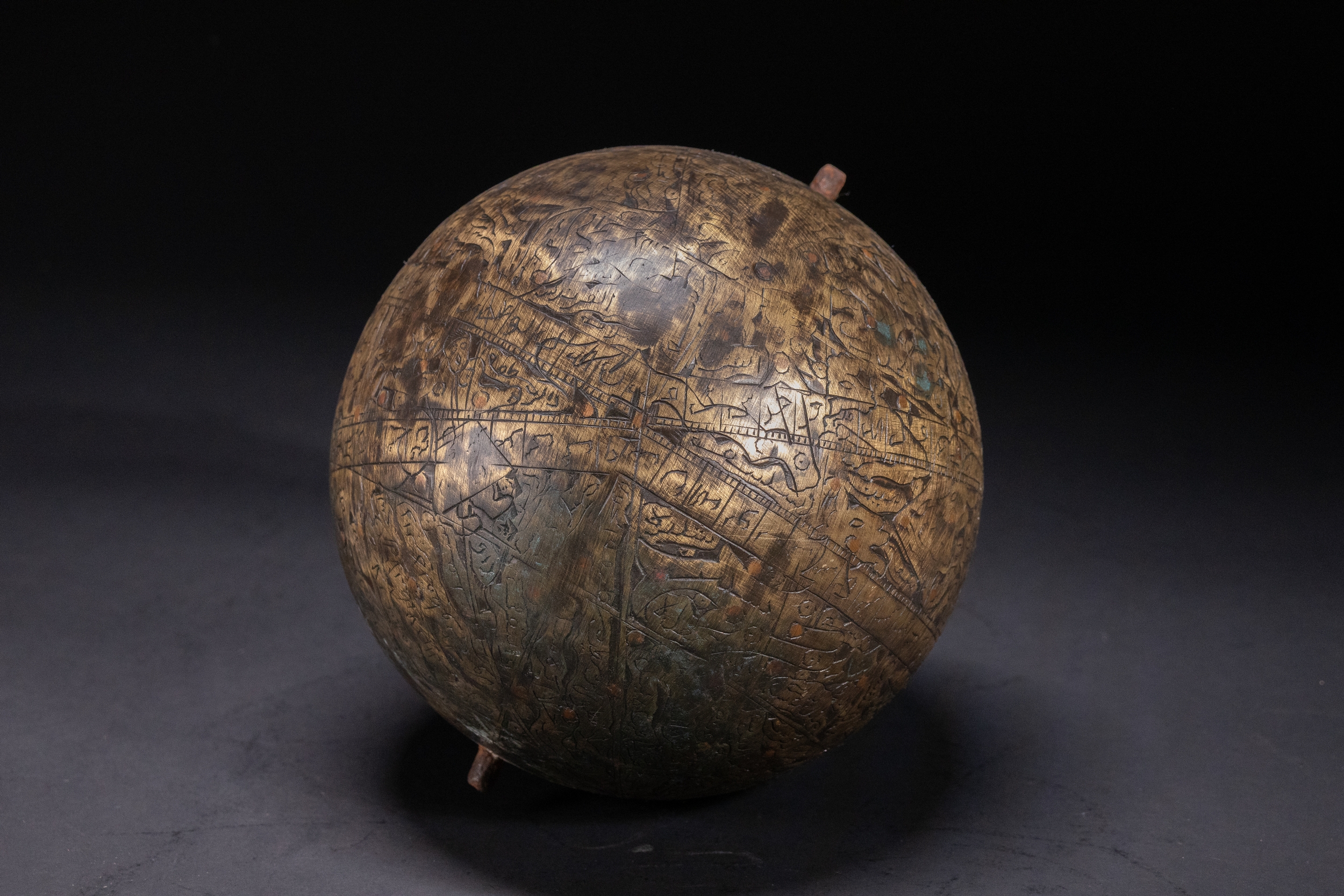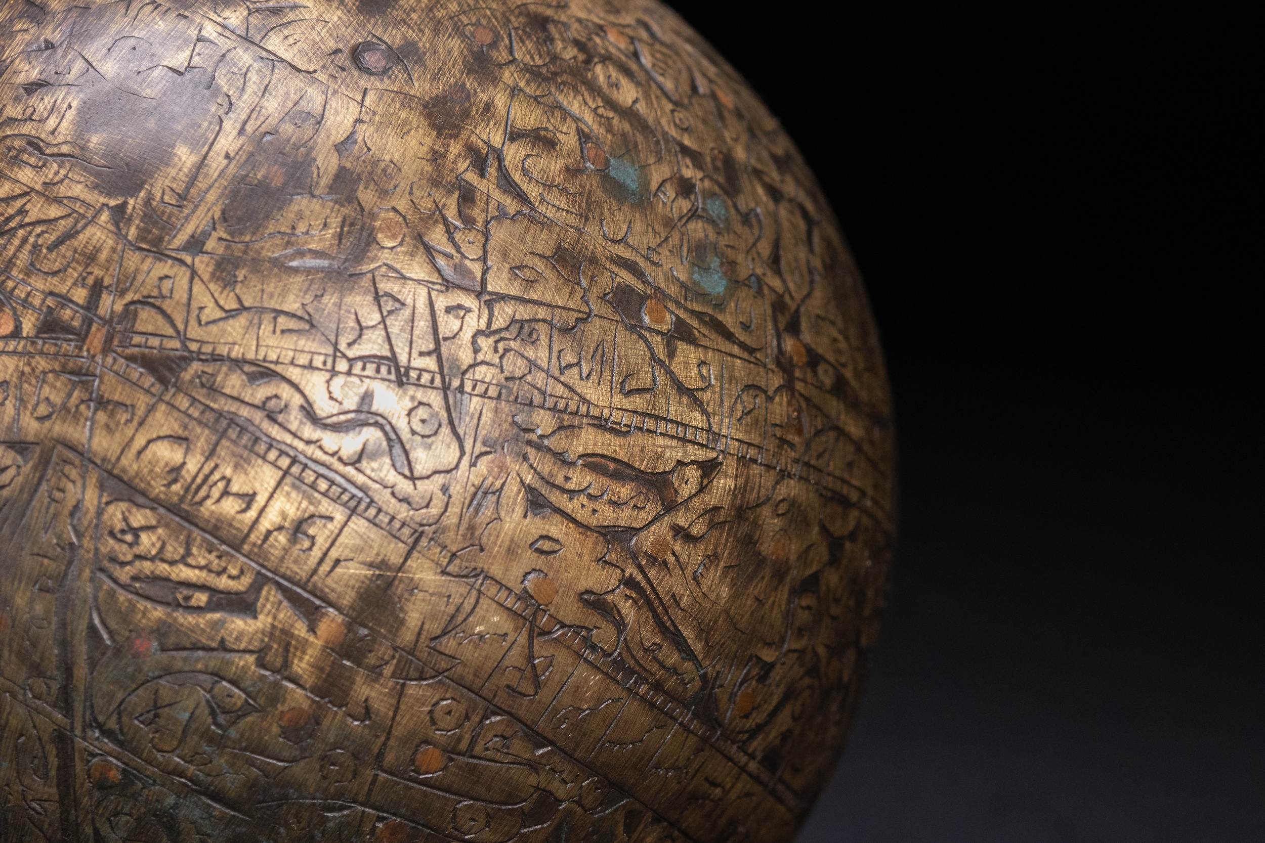 An Indo-Persian Brass Celestial Globe with Arabic Inscriptions.