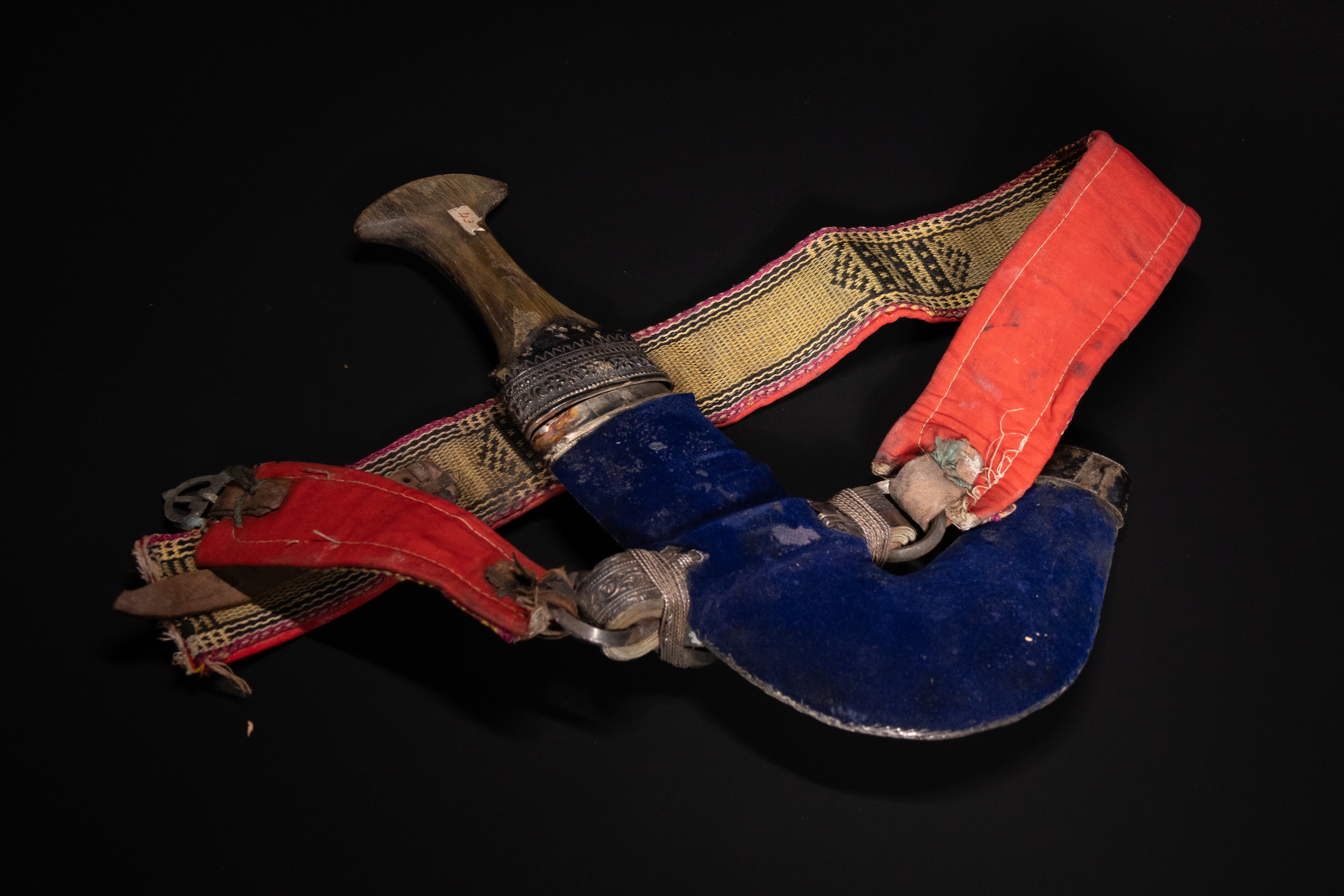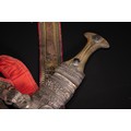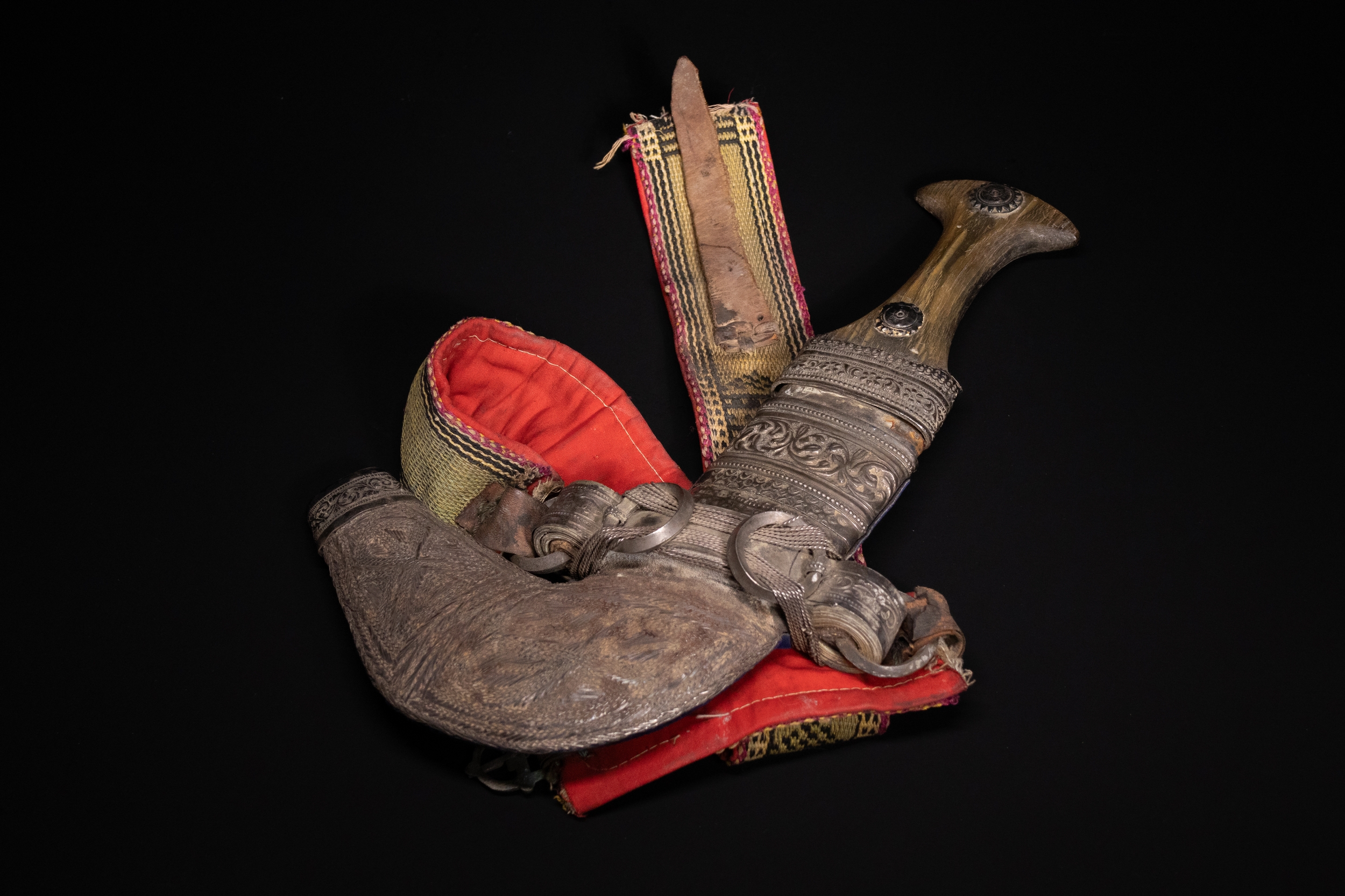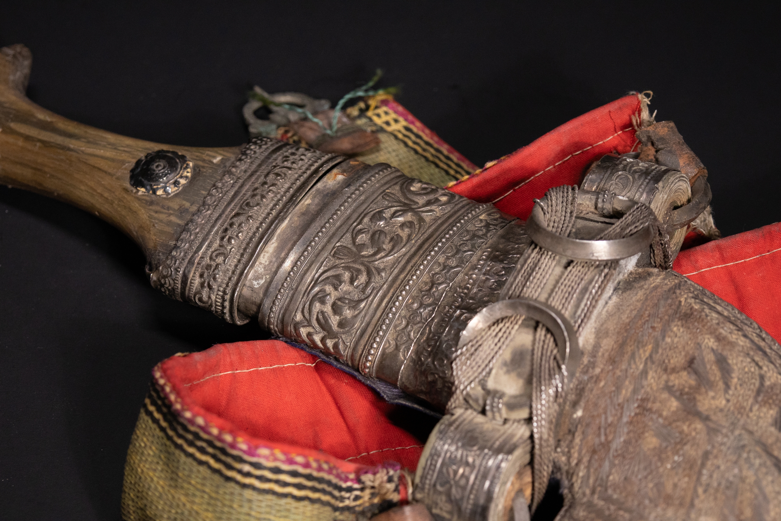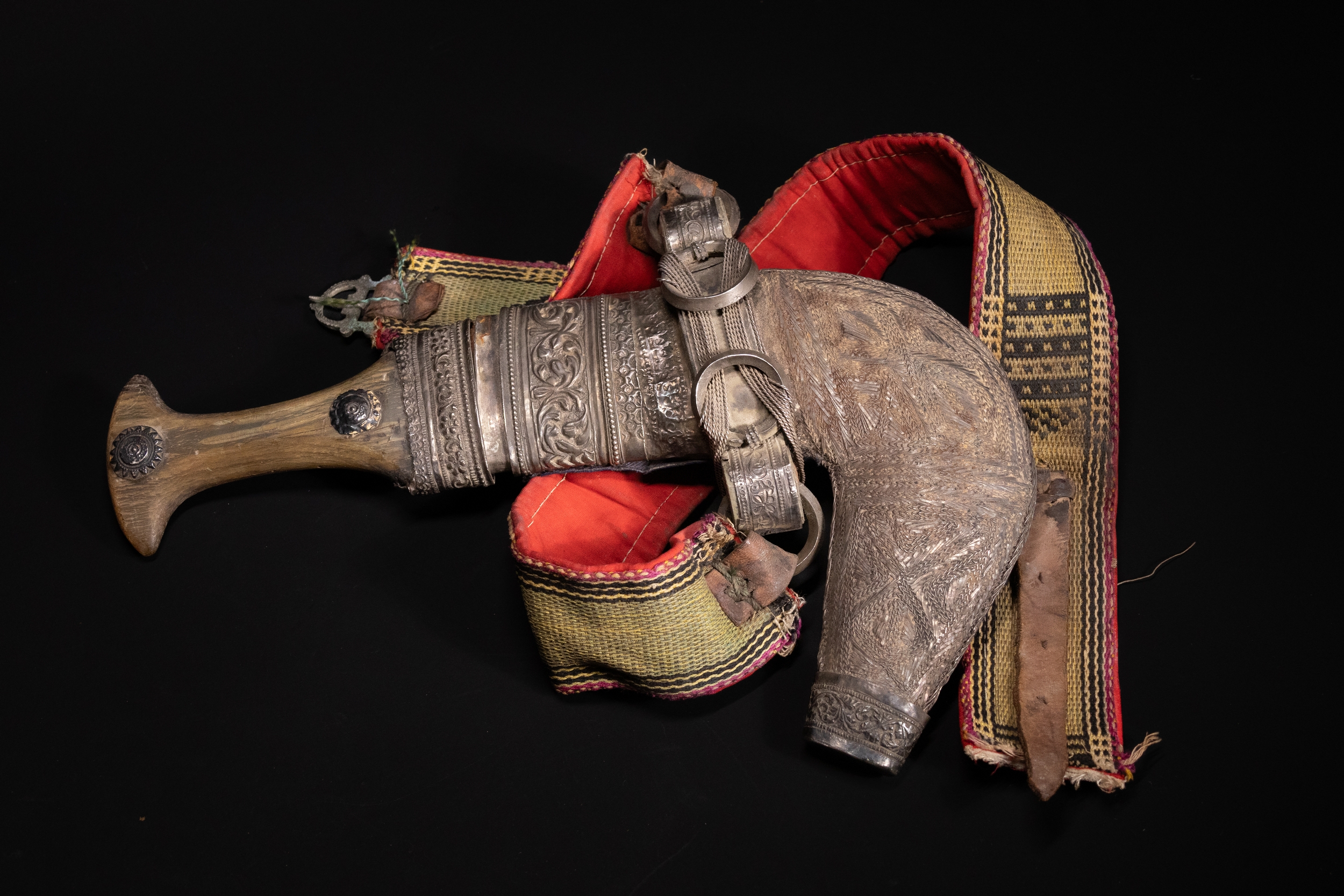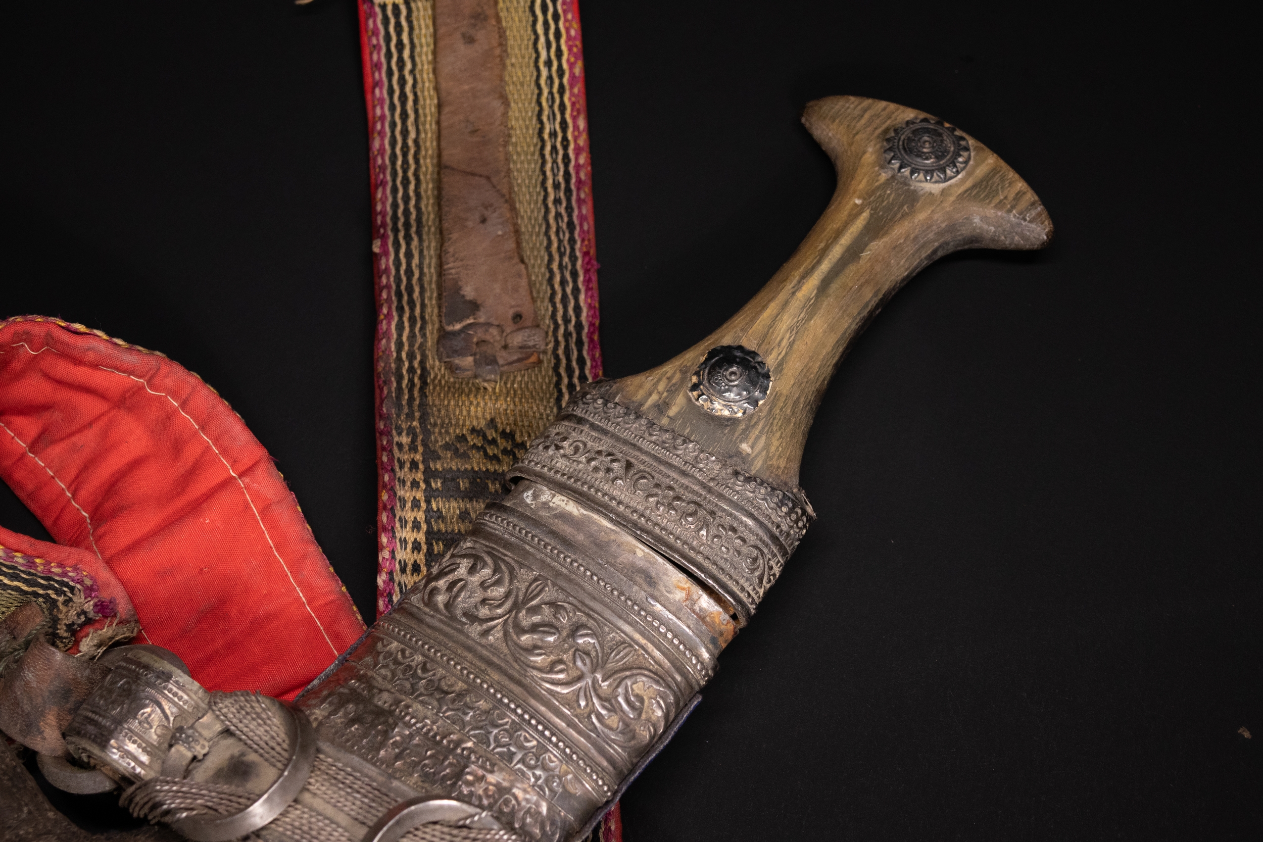 A White Metal Curved Dagger Jambiya with Rhino Horn Hilt, Oman or Yemen, 19th Century.
