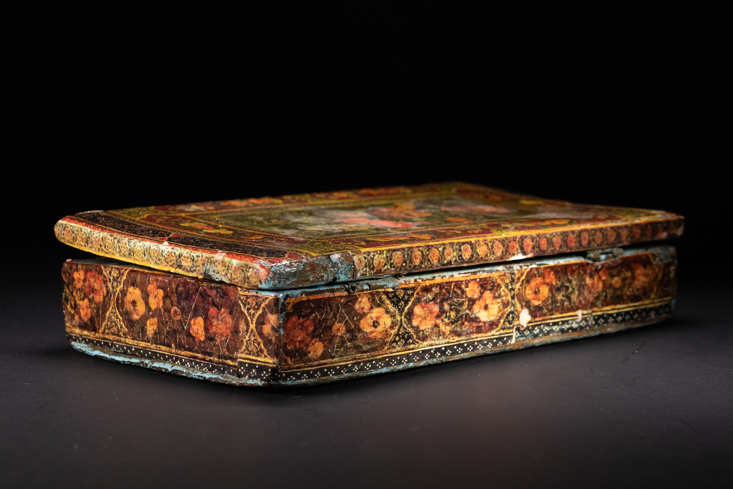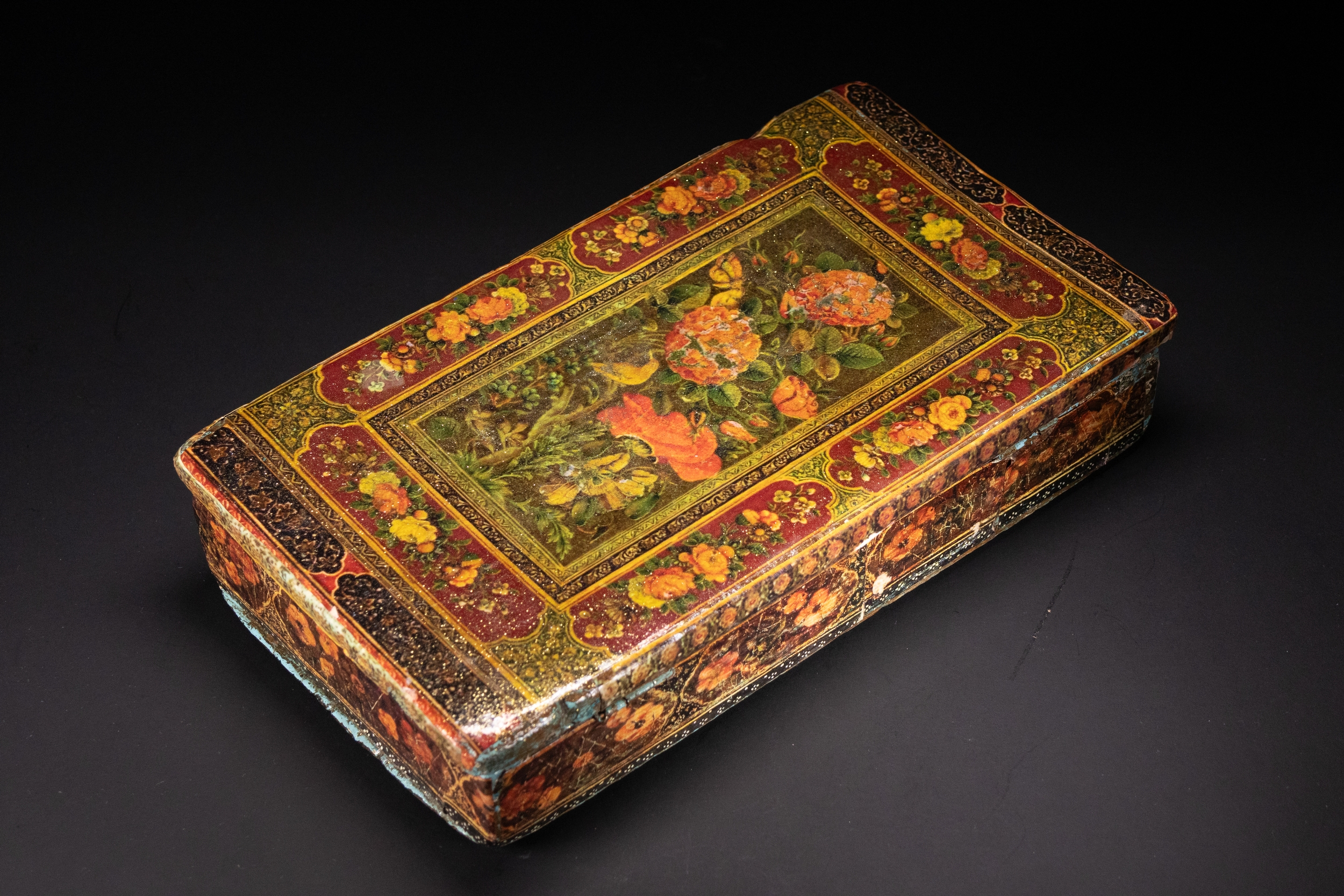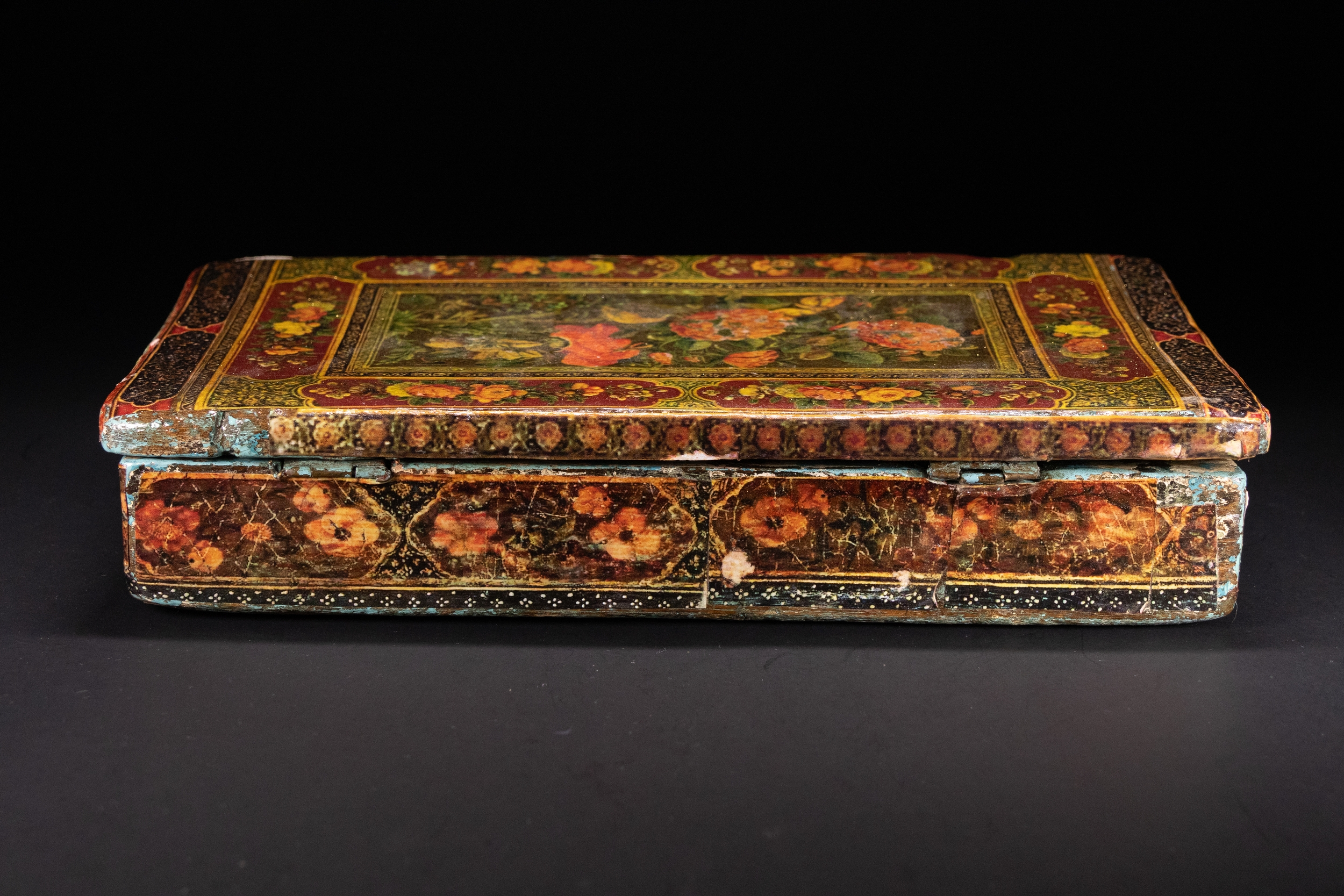 A Qajar Lacquered Merchant’s Scale Box Signed by Hashim of Isfahan, 19th Century.