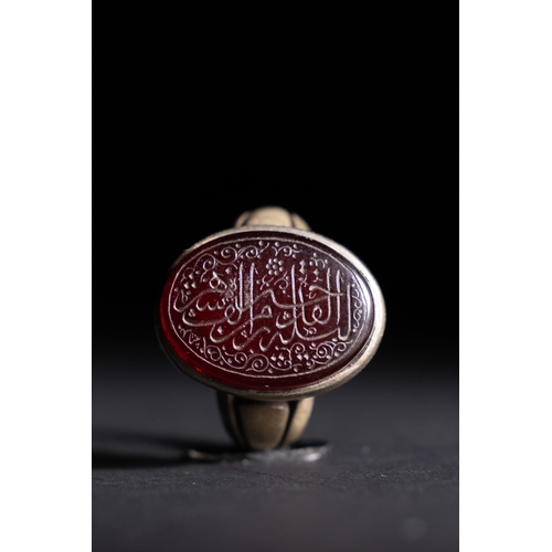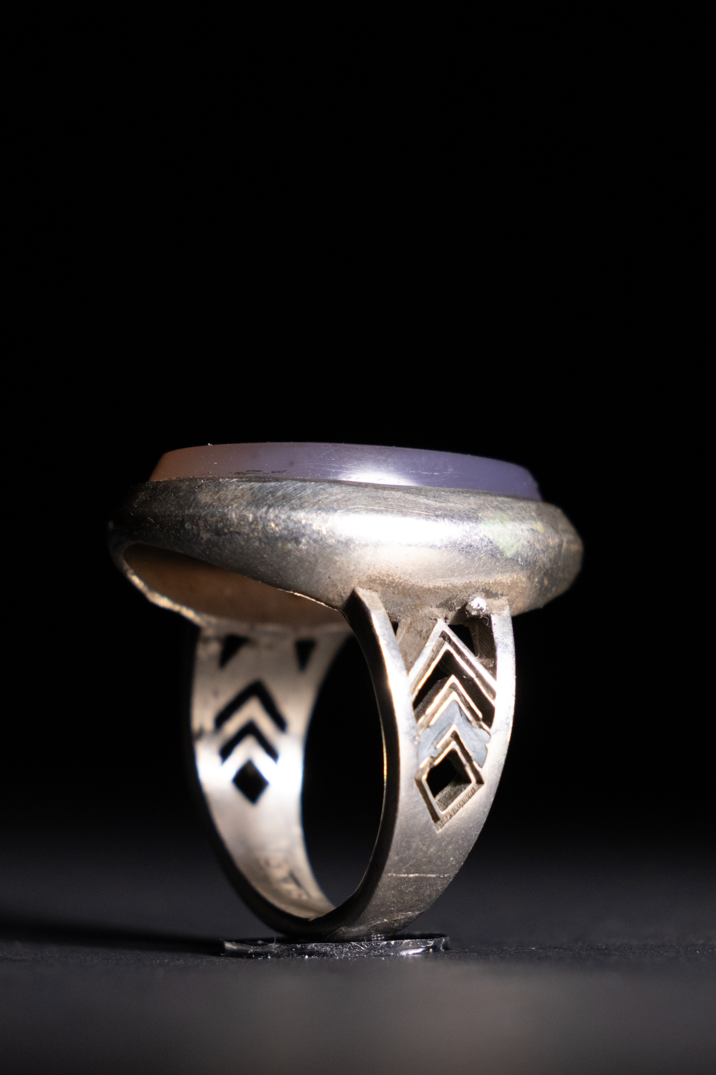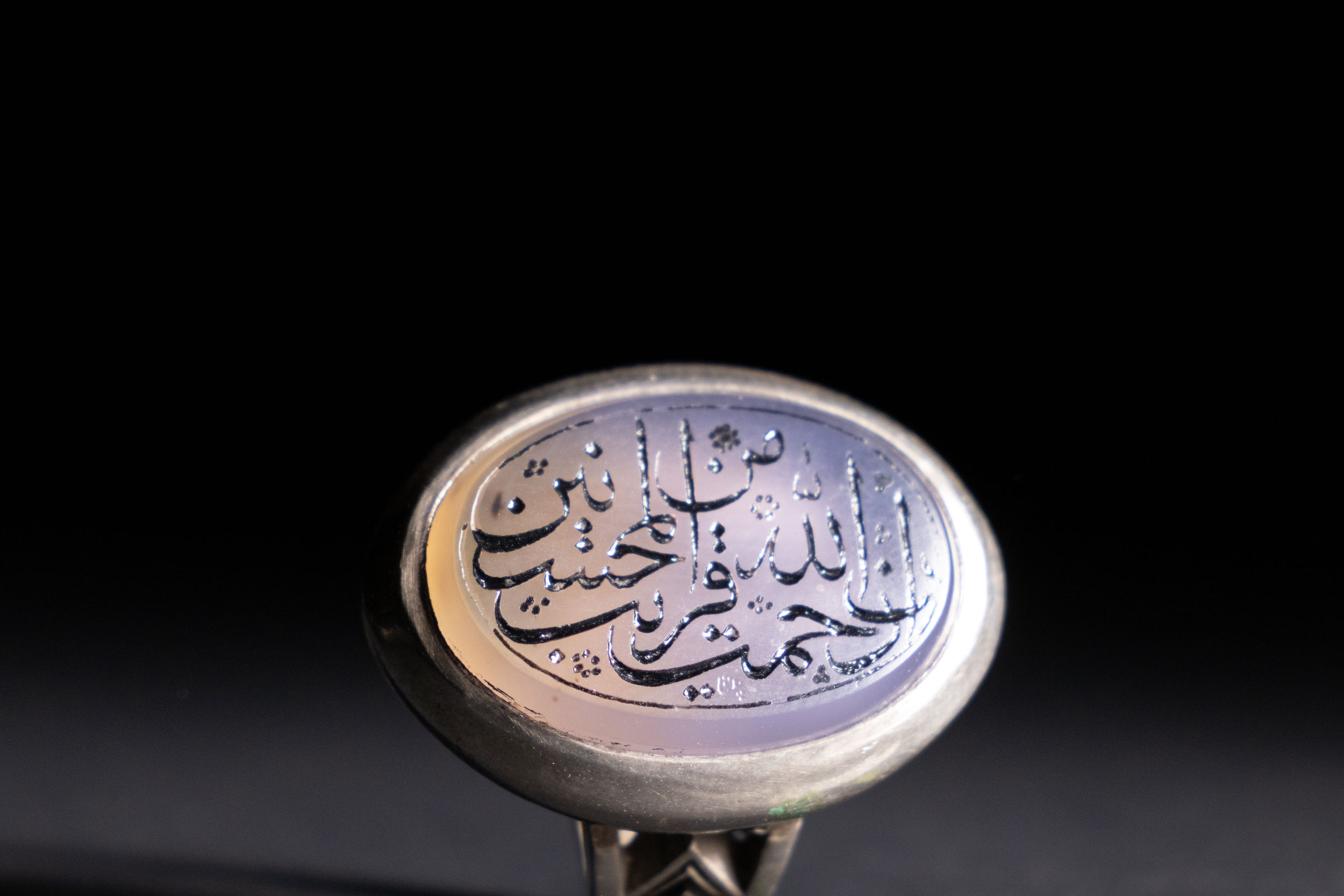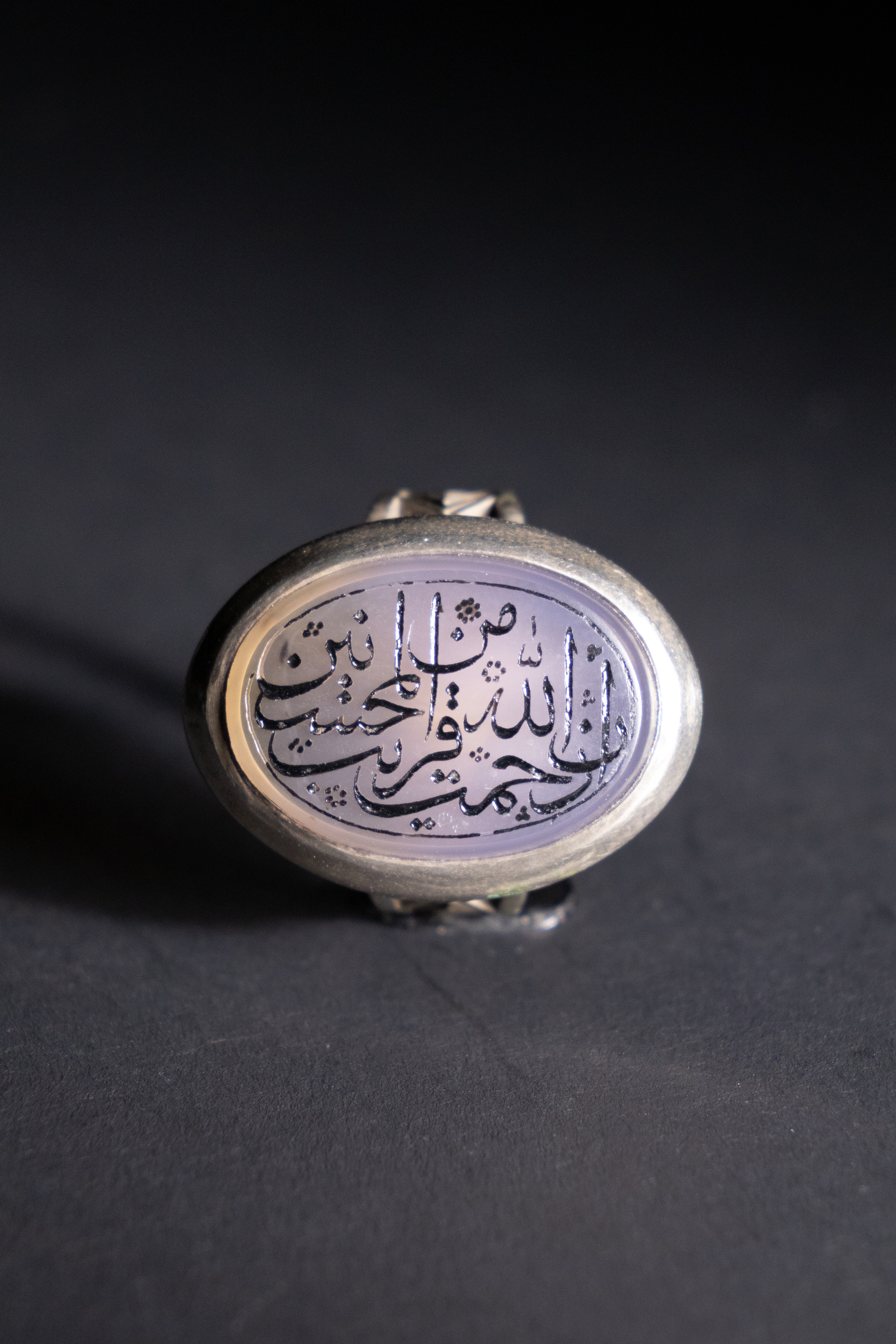An Islamic Silver Ring with Inscribed Lavender Agate.