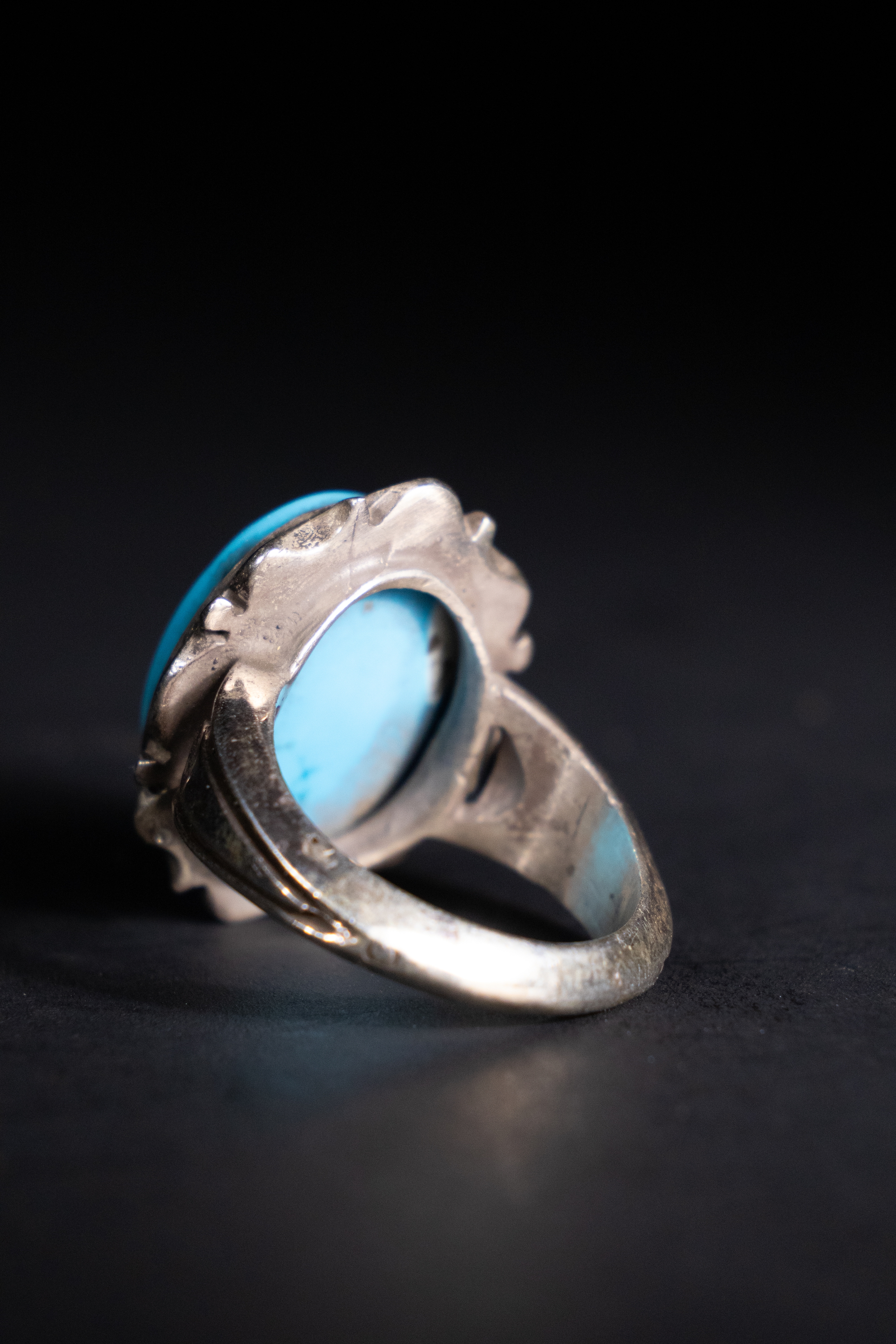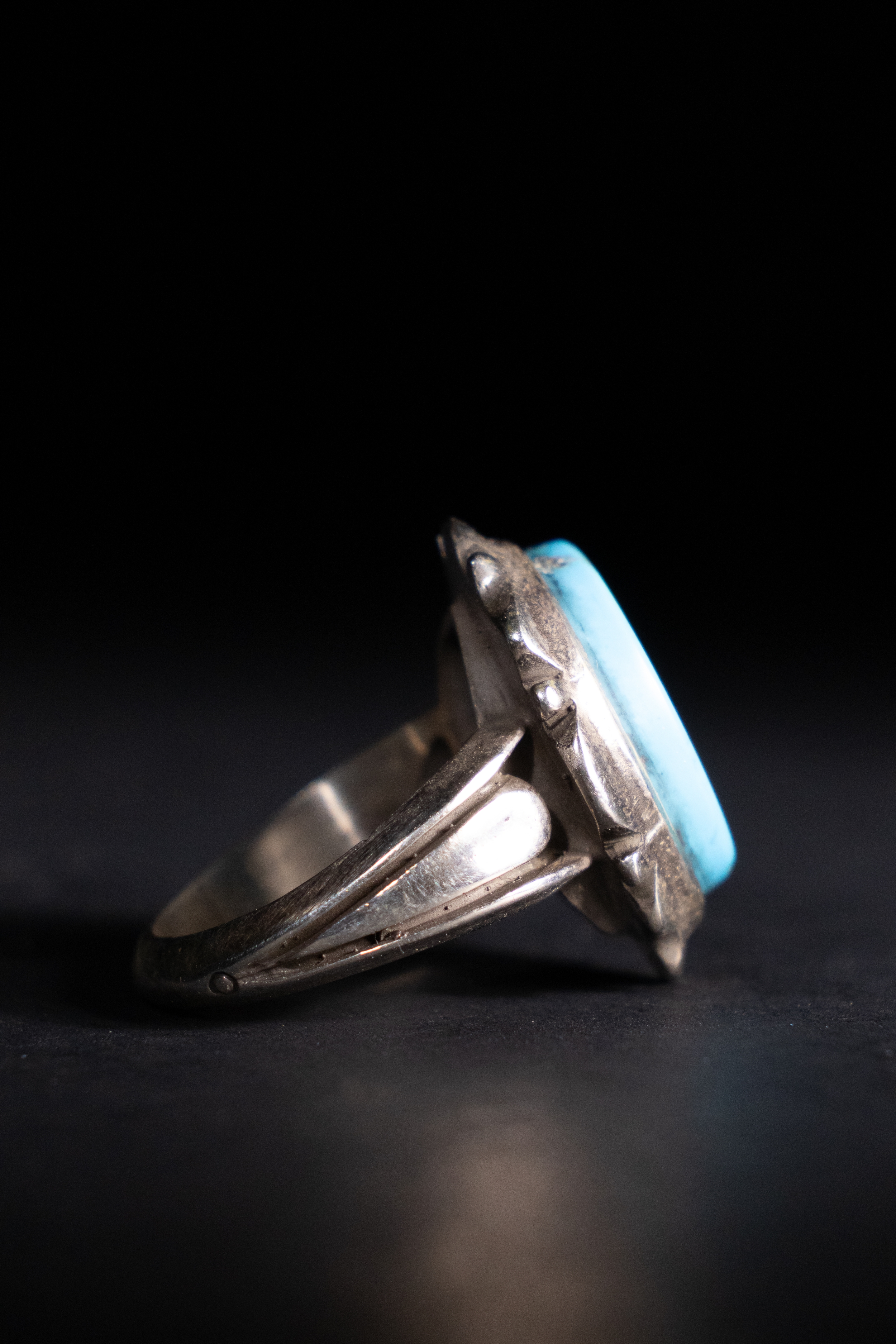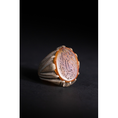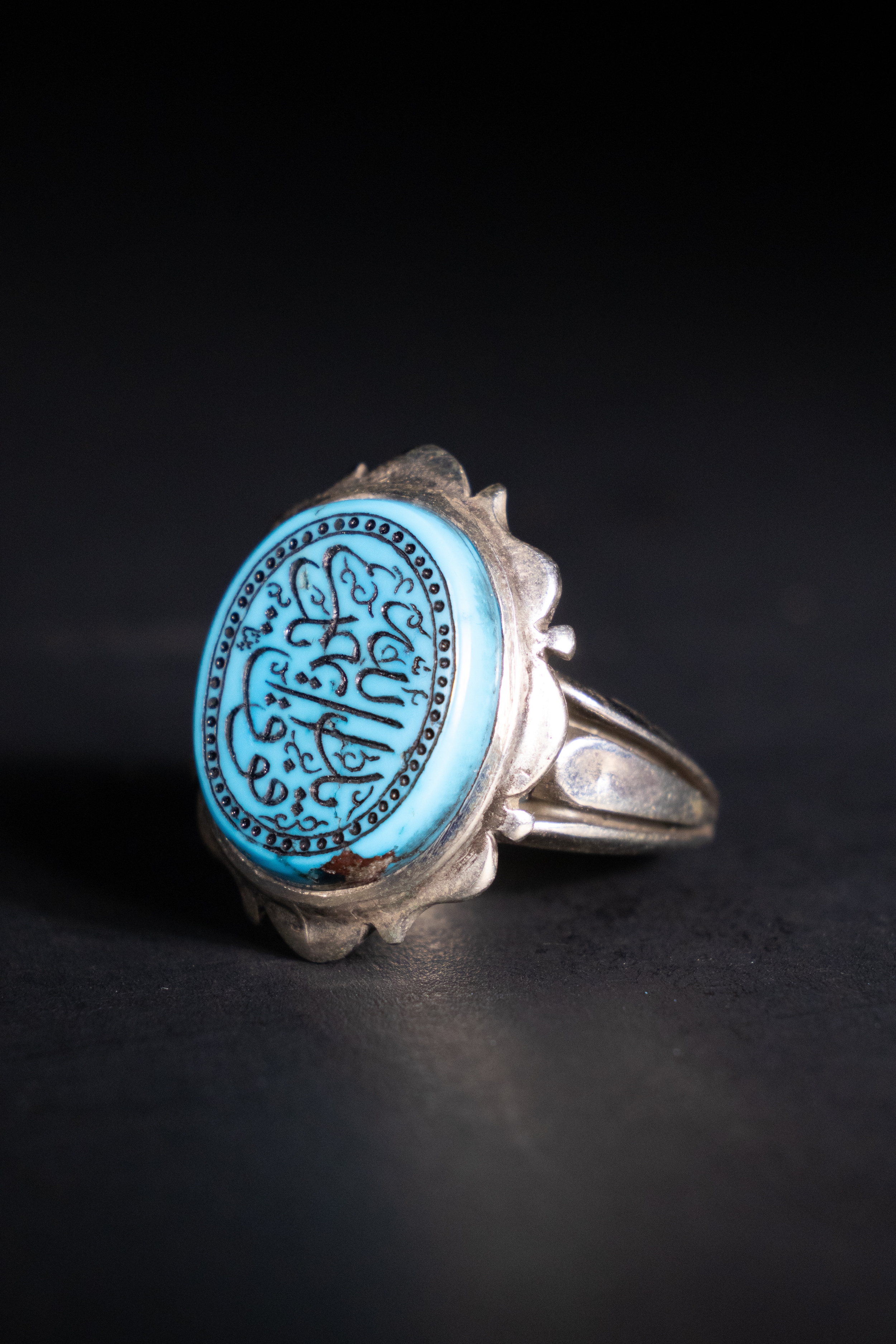 An Islamic Silver Ring with Inscribed Turquoise Stone.